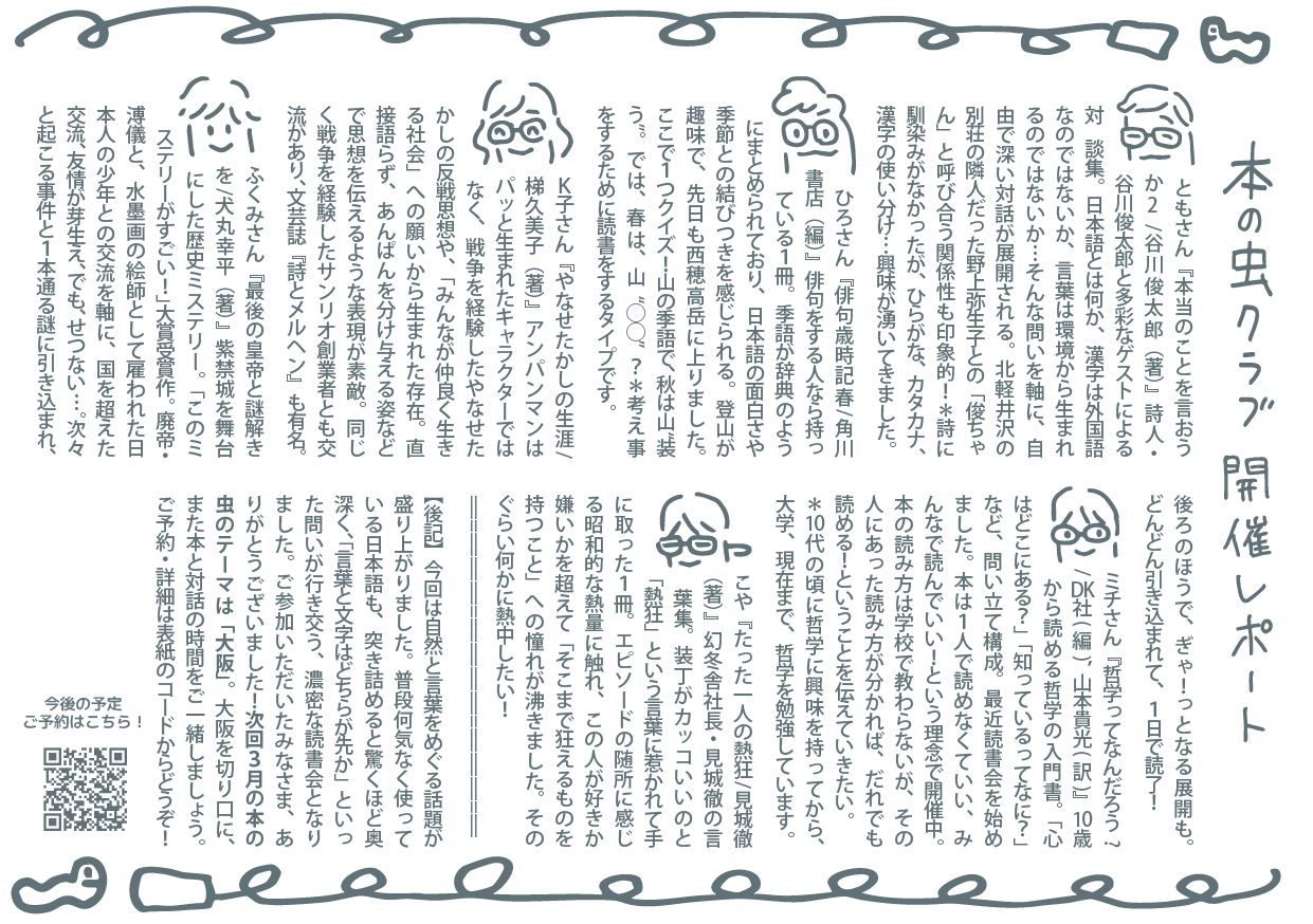 《イベント》4/26錢屋本舗本館 本の虫クラブ 4月